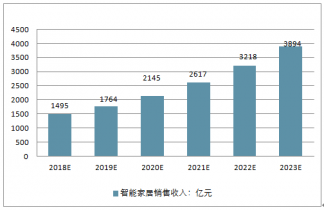 圖表:2018-2023年中國智能家居市場銷售收入預測
