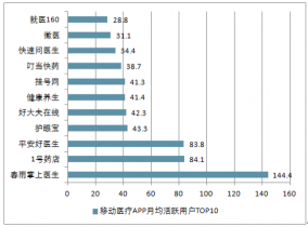 移動醫(yī)療APP月均活躍用戶TOP10