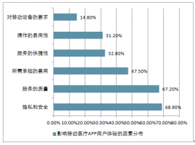 報告數(shù)據(jù)還顯示,影響移動移動醫(yī)療APP用戶體驗的因素中,隱私和安全占比最高,達68.9%,其次為服務的質(zhì)量,占比67.2%,而所需承擔的費用占比47.5%,位列第三位。