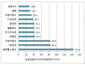 移動醫(yī)療APP月均活躍用戶TOP10