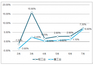 2016年全國輕工業(yè)與重工業(yè)用電量增長情況
