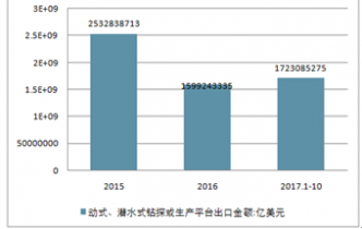 2019年浮動式、潛水式鉆探或生產(chǎn)平臺出口金額16億美元,2019年浮動式、潛水式鉆探或生產(chǎn)平臺出口金額17.23億美元。