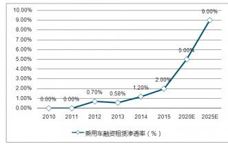 中國乘用車融資租賃滲透率