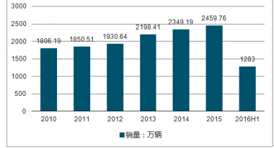 2010-2016年上半年中國汽車工業(yè)銷量情況