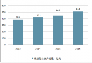 2013-2016年我國香腸行業(yè)資產(chǎn)規(guī)模走勢
