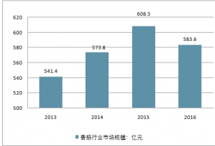 2013-2016年我國香腸行業(yè)市場規(guī)模走勢