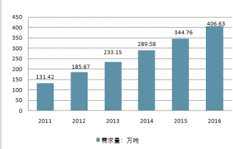2011-2016年中國(guó)核桃市場(chǎng)需求量走勢(shì)