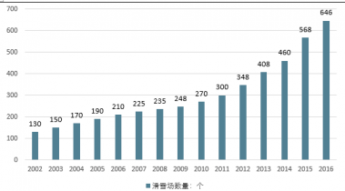 2002-2016年我國(guó)滑雪場(chǎng)數(shù)量走勢(shì)圖 |