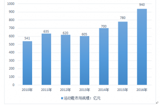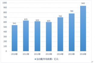 2010-2016年中國運(yùn)動(dòng)鞋行業(yè)市場(chǎng)規(guī)模情況 |