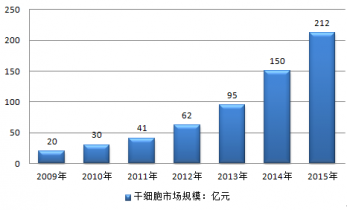 2009-2015年我國干細胞市場規(guī)模情況 |