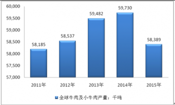 2011-2015年全球牛肉及小牛肉產(chǎn)量:千噸 |