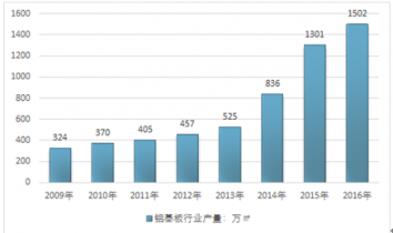 2009-2016年我國鋁基板行業(yè)產(chǎn)量情況 |