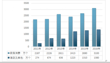 從馬桶需求領(lǐng)域來看,居民新房裝修及酒店建設(shè)等領(lǐng)域是國(guó)內(nèi)馬桶產(chǎn)品的主要需求領(lǐng)域,2016年我國(guó)居民家庭馬桶消費(fèi)量為3100萬個(gè),酒店及其他領(lǐng)域馬桶需求量為1380萬個(gè)。