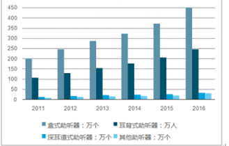 2011-2016年我國(guó)不同類型助聽(tīng)器消費(fèi)量對(duì)比
