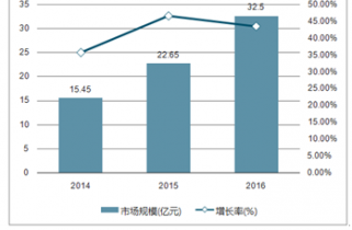 2014年中國(guó)助聽(tīng)器行業(yè)市場(chǎng)規(guī)模約15.45億元,增長(zhǎng)率35.62%。2015年約22.65億元,增長(zhǎng)率46.6%。2016年32.5億元,增長(zhǎng)率43.49%。