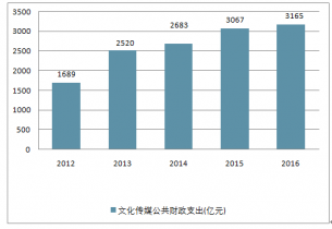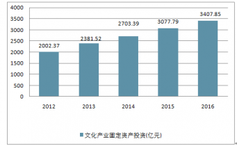 我國文化產(chǎn)業(yè)公共財政支持從 2012 年的 1689.22 億元提高到 2016年的 3165 億元,增長 87.36%;文化產(chǎn)業(yè)固定資產(chǎn)投資從 2012 年的 2002.37 億元上升到 3407.85 億元,增長 70.19%;文化產(chǎn)業(yè)增加值從 2012 年的 18071 億元提高到 2016 年的 30785 億元,增長 70.35%,占 GDP 的比重由 2012 年的 3.48%升至 2016 年的 4.14%。