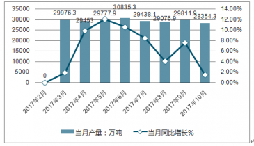 2019年1-10月當(dāng)月中國(guó)原煤產(chǎn)量走勢(shì)