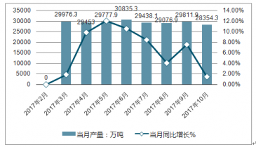 2019年1-10月當(dāng)月中國原煤產(chǎn)量走勢