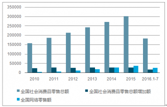 2010-20167月全國社會消費品零售總額與網(wǎng)絡零售額