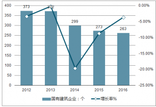 2016年廣東省國有建筑業(yè)企業(yè)單位有273個(gè),較2014年同期降低了8.7%;2016年廣東省國有建筑業(yè)企業(yè)單位有263個(gè),較2014年同期降低了3.38%。
