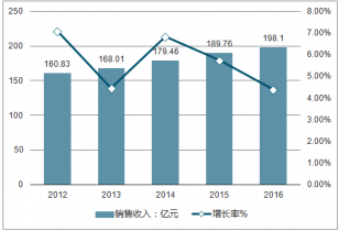 2015年中國繼電器行業(yè)銷售收入為189.76億元,較2014年同期增長5.74%;2016年中國繼電器行業(yè)銷售收入為198.1億元,較2015年同期增長4.40%。
