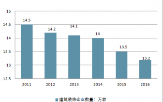 2011-2016年中國建筑裝修裝飾工程企業(yè)數(shù)量情況