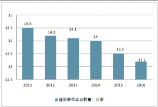 2011-2016年中國建筑裝修裝飾工程企業(yè)數(shù)量情況