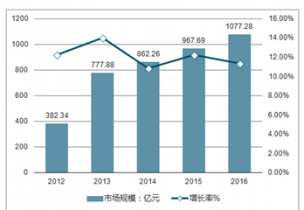 2012-2016年我國箱包行業(yè)市場規(guī)模及增長率走勢