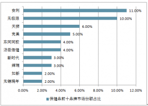 中國保健品公司前十品牌市場份額占比