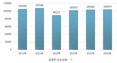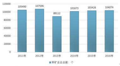 2011-2016年我國采礦業企業數 |