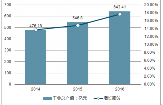 2014-2016年中國商用廚具行業(yè)工業(yè)總產(chǎn)值及增長率