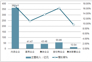 2016年我國商用廚具內(nèi)資企業(yè)主營業(yè)務(wù)收入為362.41億元,國有企業(yè)41.47億元,集體企業(yè)43.48億元,股份制企業(yè)55.86億元。