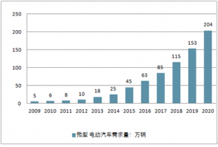 2009-2020 年中國微型電動汽車市場需求量