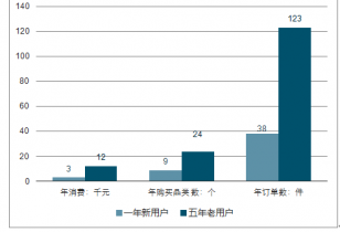 從成長(zhǎng)動(dòng)力來看,網(wǎng)購(gòu)規(guī)模可以分解為網(wǎng)購(gòu)用戶數(shù)和單用戶消費(fèi)金額的乘積。電商行業(yè)發(fā)展初期以絕對(duì)價(jià)格優(yōu)勢(shì)吸引8090后消費(fèi)者,享受用戶規(guī)模紅利;而發(fā)展至今,年輕一代消費(fèi)習(xí)慣已徹底養(yǎng)成,對(duì)網(wǎng)購(gòu)的依賴程度持續(xù)增加,表現(xiàn)為單個(gè)用戶網(wǎng)購(gòu)消費(fèi)在個(gè)人消費(fèi)中的占比大幅提升。以阿里巴巴用戶數(shù)據(jù)為例,F(xiàn)Y2017,阿里一年內(nèi)的新用戶(2016年注冊(cè))人均消費(fèi)38單、涉及9個(gè)品類、年消費(fèi)金額約3000元;作為對(duì)比,阿里五年老用戶(2012年注冊(cè))人均消費(fèi)123單、涉及24個(gè)品類,年消費(fèi)金額約1.2萬元。