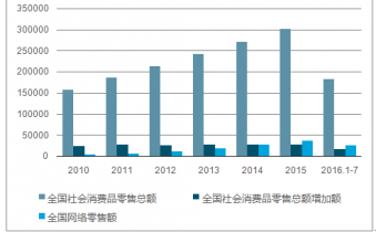 2010-2016年7月全國(guó)社會(huì)消費(fèi)品零售總額與網(wǎng)絡(luò)零售額