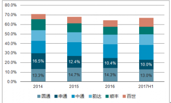 2014-2017H1年中國快遞行業(yè)集中度