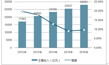 2012-2016年中國醫(yī)藥制造業(yè)企業(yè)主營收入及增速