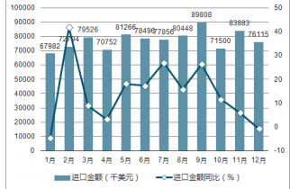 2019年1-12月中國(guó)玻璃纖維及其制品進(jìn)口數(shù)量為200288噸,同比增長(zhǎng)2.4%;2019年1-12月中國(guó)玻璃纖維及其制品進(jìn)口金額為931643千美元,同比增長(zhǎng)13.4%。