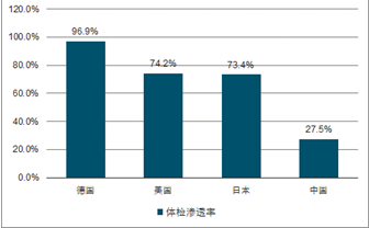 中國(guó)與國(guó)內(nèi)外健康體檢滲透率對(duì)比