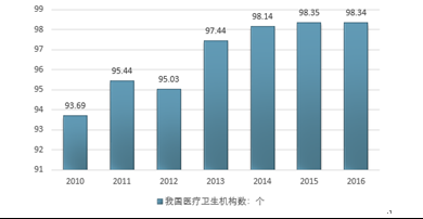 2016年末,全國醫(yī)療衛(wèi)生機構(gòu)總數(shù)達983394個,比2015年減少134個。其中:醫(yī)院29140個,基層醫(yī)療衛(wèi)生機構(gòu)926518個,專業(yè)公共衛(wèi)生機構(gòu)24866個。與2015年相比,醫(yī)院增加1553個,基層醫(yī)療衛(wèi)生機構(gòu)增加5748個,專業(yè)公共衛(wèi)生機構(gòu)減少7061個(由于資源整合,計劃生育技術(shù)服務機構(gòu)減少)