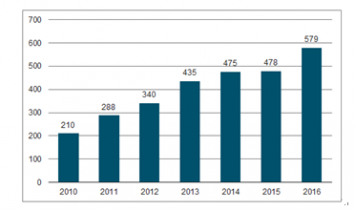 受益于全球各個(gè)國(guó)家或地區(qū)政策推廣支持,景觀亮化市場(chǎng)滲透率不斷提高,2016年全球景觀亮化市場(chǎng)達(dá)到2450億元,預(yù)計(jì)2019年將達(dá)到2744億元,同比增長(zhǎng)12%。 中國(guó)已經(jīng)成為全球最大的景觀亮化市場(chǎng),2016年中國(guó)景觀照明市場(chǎng)規(guī)模達(dá)到579億元。