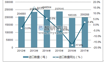 2012-2019年中國玻璃纖維及其制品進(jìn)口數(shù)量統(tǒng)計(jì)圖
