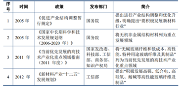 玻璃纖維及其制品為一種重要的無機(jī)非金屬新材料,為鼓勵(lì)和支持玻璃纖維行業(yè)發(fā)展,國家出臺(tái)一系列政策法規(guī)進(jìn)行扶持和引導(dǎo),這為行業(yè)發(fā)展創(chuàng)造了有利的市場環(huán)境。