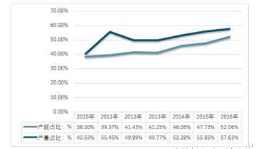 2010-2016年我國(guó)電解銅箔產(chǎn)能產(chǎn)量全球占比分析