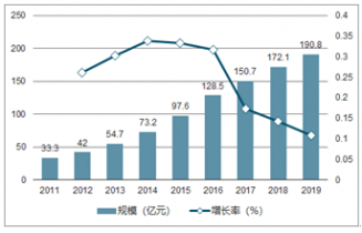 2011-2019年中國(guó)汽車網(wǎng)絡(luò)廣告市場(chǎng)規(guī)模