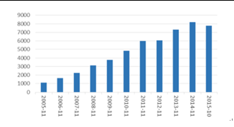 近年來(lái),隨著我國(guó)社會(huì)經(jīng)濟(jì)水平的不斷提高,我國(guó)金屬結(jié)構(gòu)制造行業(yè)也得到了快速的發(fā)展,從主營(yíng)業(yè)務(wù)收入的角度看,2005-2014年呈現(xiàn)持續(xù)增長(zhǎng)的趨勢(shì),說(shuō)明金屬結(jié)構(gòu)制造行業(yè)的市場(chǎng)規(guī)模呈現(xiàn)出不斷擴(kuò)大的態(tài)勢(shì)。