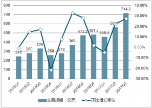 2015Q1-2017Q3中國互聯(lián)網教育市場交易規(guī)模