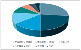 按半導(dǎo)體器件分類:2016 年最大的細(xì)分市場為邏輯電路(27%)和存儲(chǔ)器(23%),隨后為模擬電路(14%)、MPU(13%)、光電元件(9%)、分立器件(6%)、MCU(4%)、傳感器(3%)、DSP(1%)等。