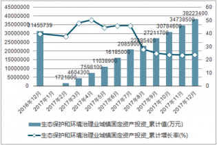 2019年1-12月份中國生態保護和環境治理業城鎮固定資產投資38223400.00萬元,同比增長23.90%;2016年1-12月份中國生態保護和環境治理業城鎮固定資產投資31455739.00萬元,同比增長39.90%。
