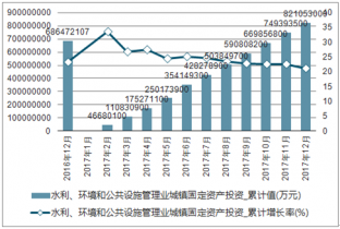 2019年1-12月份中國水利、環境和公共設施管理業城鎮固定資產投資821053000.00萬元,同比增長21.20%;2016年1-12月份中國水利、環境和公共設施管理業城鎮固定資產投資686472107.00萬元,同比增長23.30%。